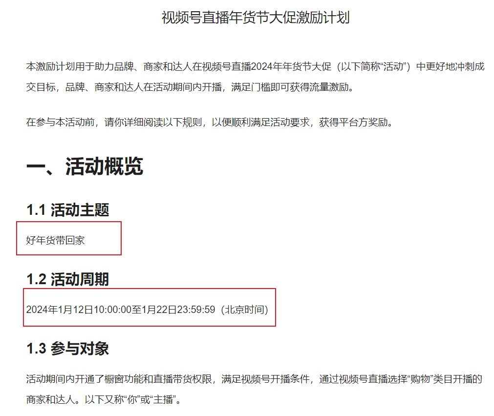 視頻號發(fā)布直播年貨節(jié)大促激勵計劃