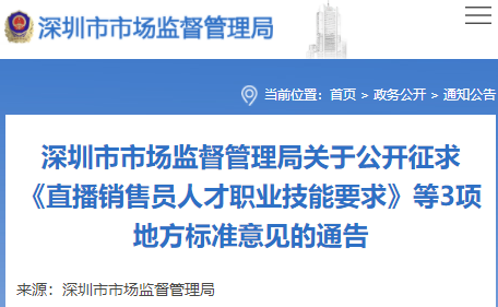 深圳市擬制定《直播銷售員人才職業(yè)技能要求》標(biāo)準(zhǔn)