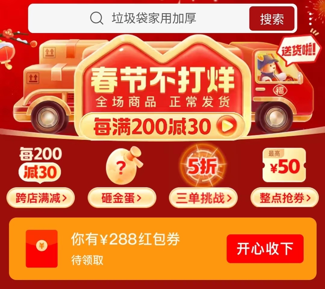 2月1日消息,繼“年貨節(jié)”之后,拼多多近日正式開啟“春節(jié)不打烊”活動(dòng),活動(dòng)將一直持續(xù)到2月20日。用戶打開拼多多App,通過首頁底部活動(dòng)入口,或搜索“春節(jié)不打烊”即可直達(dá)活動(dòng)主會(huì)場。在會(huì)場醒目位置,可以看到拼多多為消費(fèi)者準(zhǔn)備的福利,除了跨店每滿200元減30元、整…