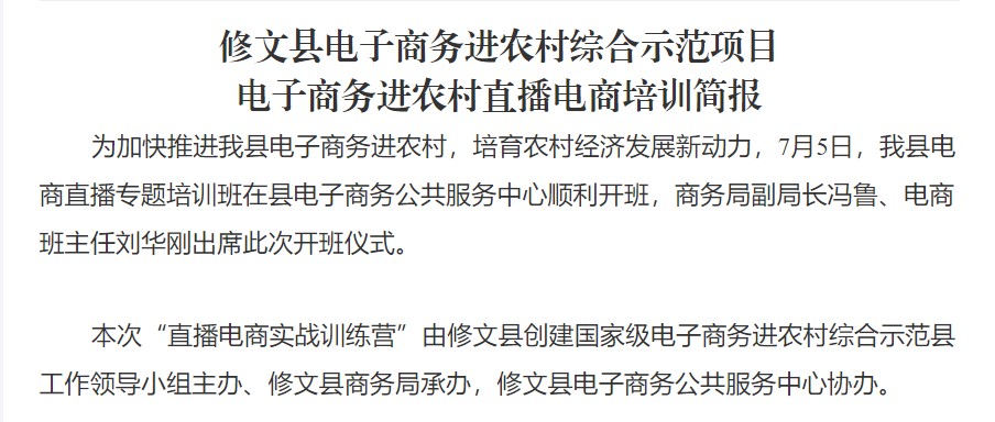 修文縣電子商務(wù)進農(nóng)村綜合示范項目 電子商務(wù)進農(nóng)村直播電商培訓(xùn)簡報