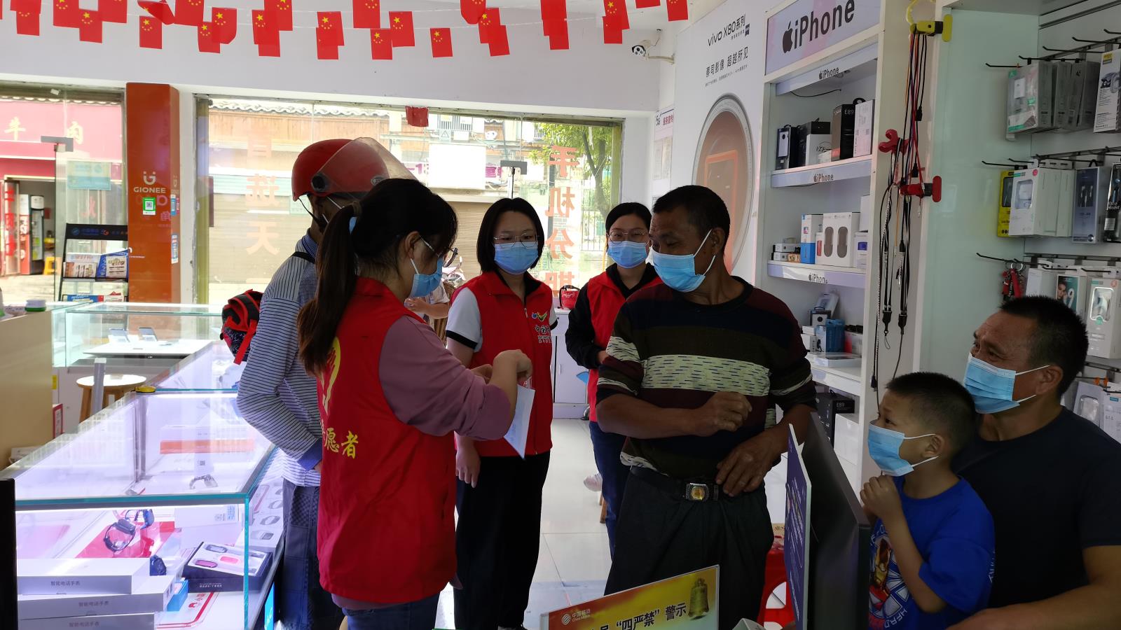 9月3日,面對(duì)新型冠狀病毒疫情蔓延的嚴(yán)峻形勢(shì),修文縣扎佐街道立即組織志愿者開(kāi)展對(duì)全轄區(qū)內(nèi)廣場(chǎng)、打印店、商場(chǎng)超市及群眾的疫情防控宣傳工作。??志愿者們迅速到廣場(chǎng)、打印店、商場(chǎng)超市等人員密集場(chǎng)所開(kāi)展巡查,督促各類場(chǎng)所落實(shí)掃碼測(cè)溫、通風(fēng)消毒,要求商店進(jìn)出人員戴…